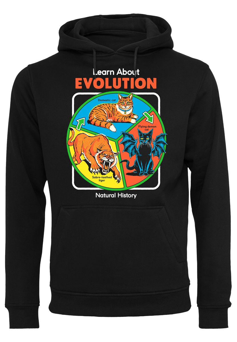 The hoodie shows the evolution of the cat from sabre-toothed tiger, to house cat, to flying demon.