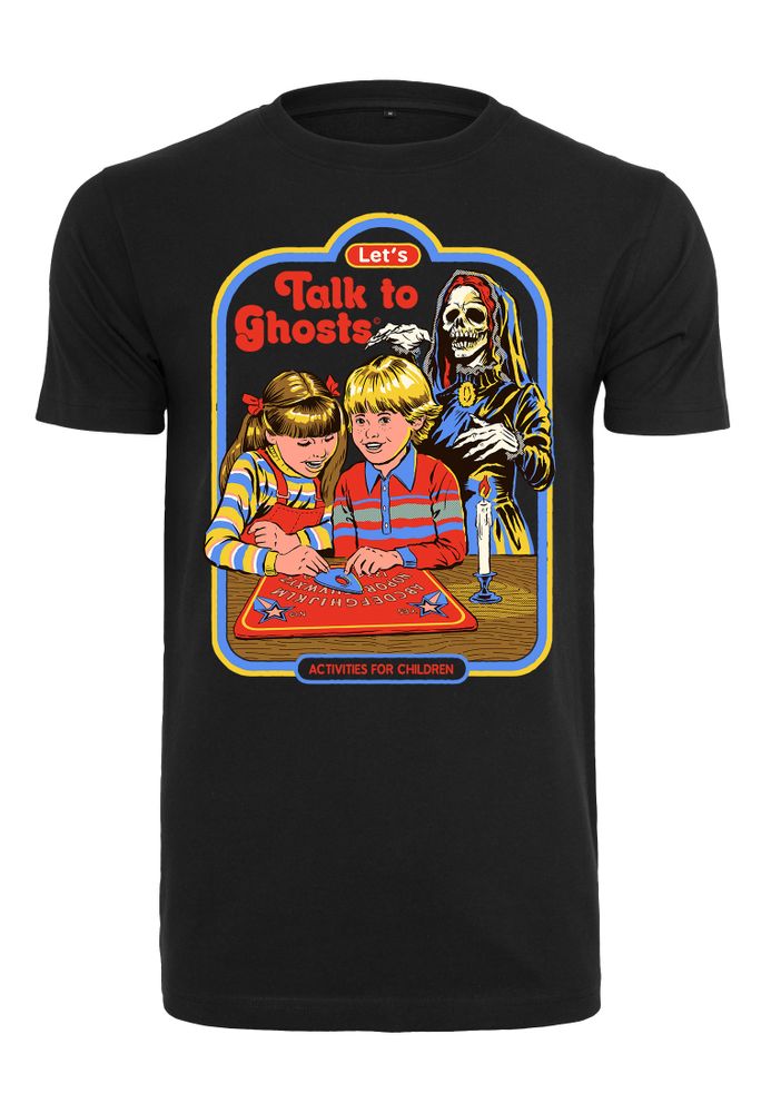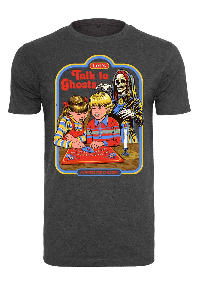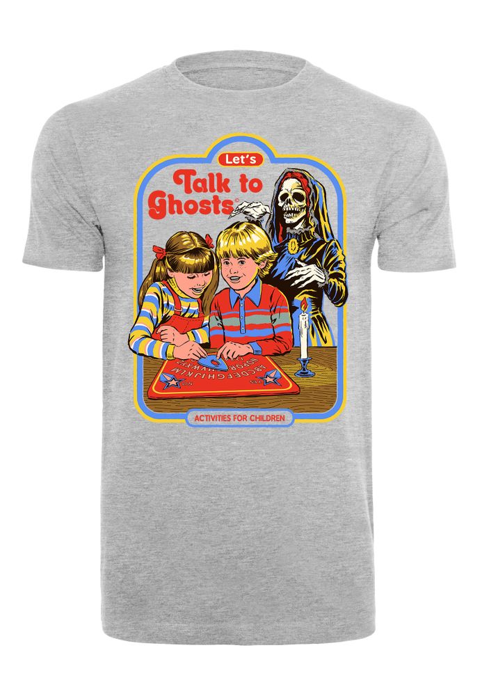 The T-shirt shows two children playing with an Ouija board. In the background you can see the Grim Reaper. You can read the text "Let's Talk To Ghost".