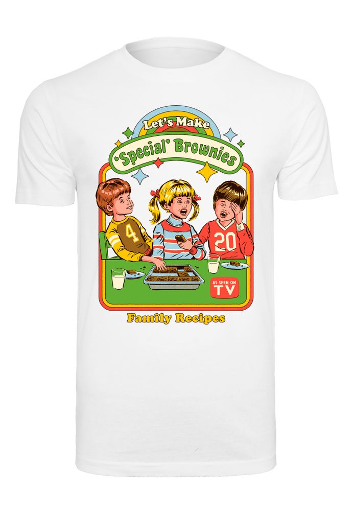 The t-shirt features three kids who baked "special" brownies.