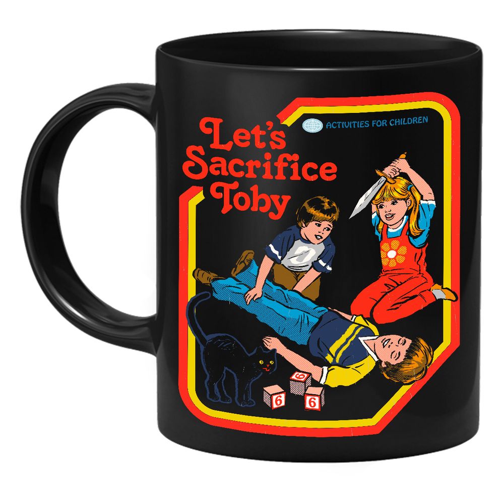 The mug shows two children who want to sacrifice another child named Toby and the text "Let's Sacrifice Toby".