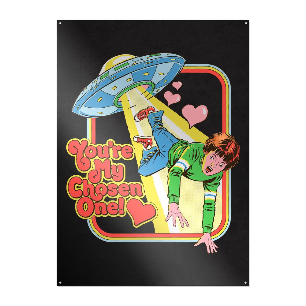 The zip hoodie shows a boy being pulled in by an UFO. It also features hearts and the phrase "You're My Chosen One!".