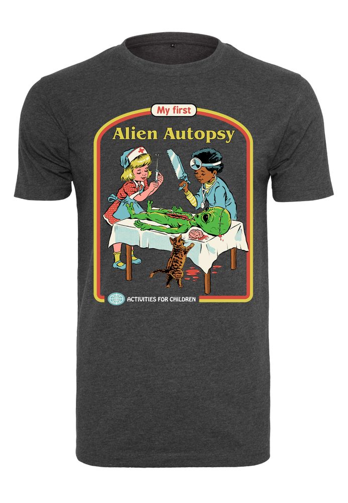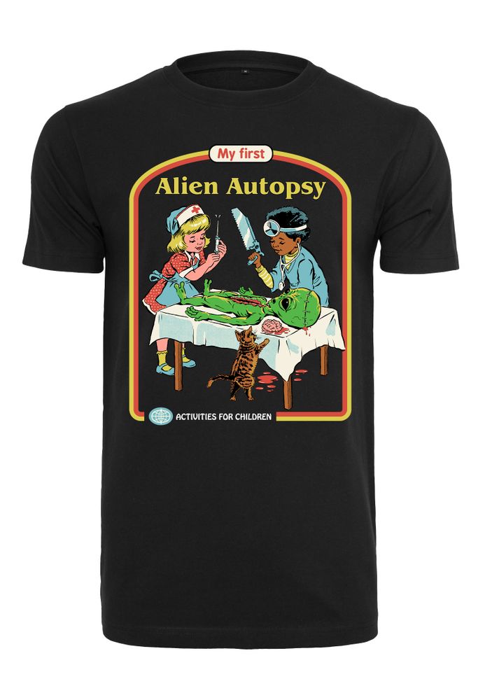 The T-shirt shows two kids doing an alien autopsy. At the top you can read the text "My first Alien Autopsy".