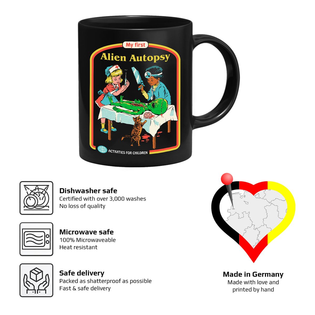 The zip-hoodie shows two kids doing an alien autopsy. At the top you can read the text "My first Alien Autopsy".