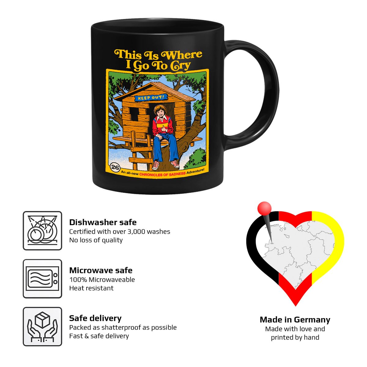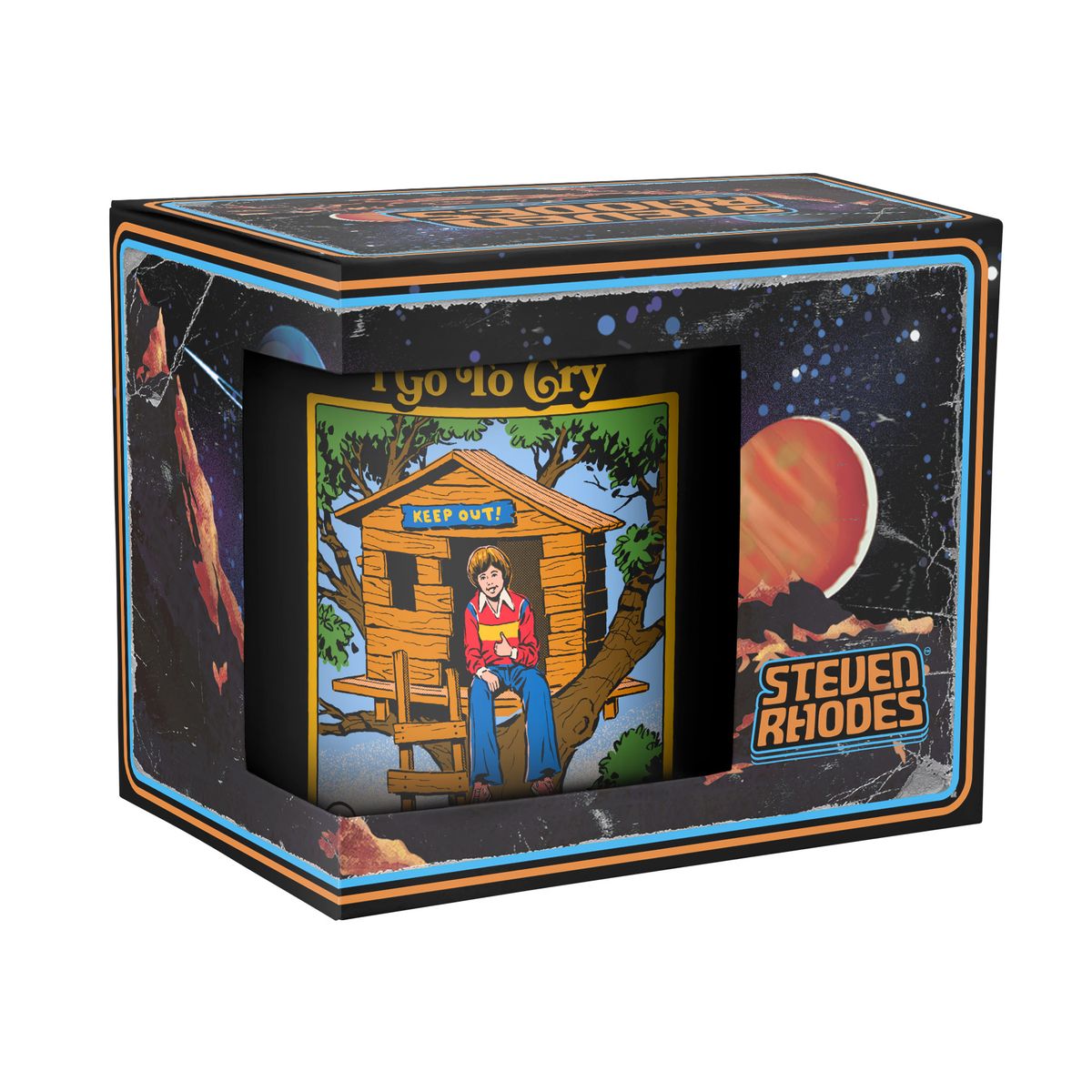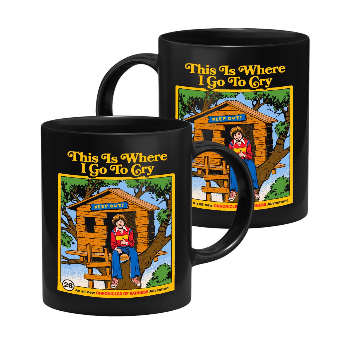 The mug shows a boy in his tree house with the slogan “This Is Where I Go To Cry”.