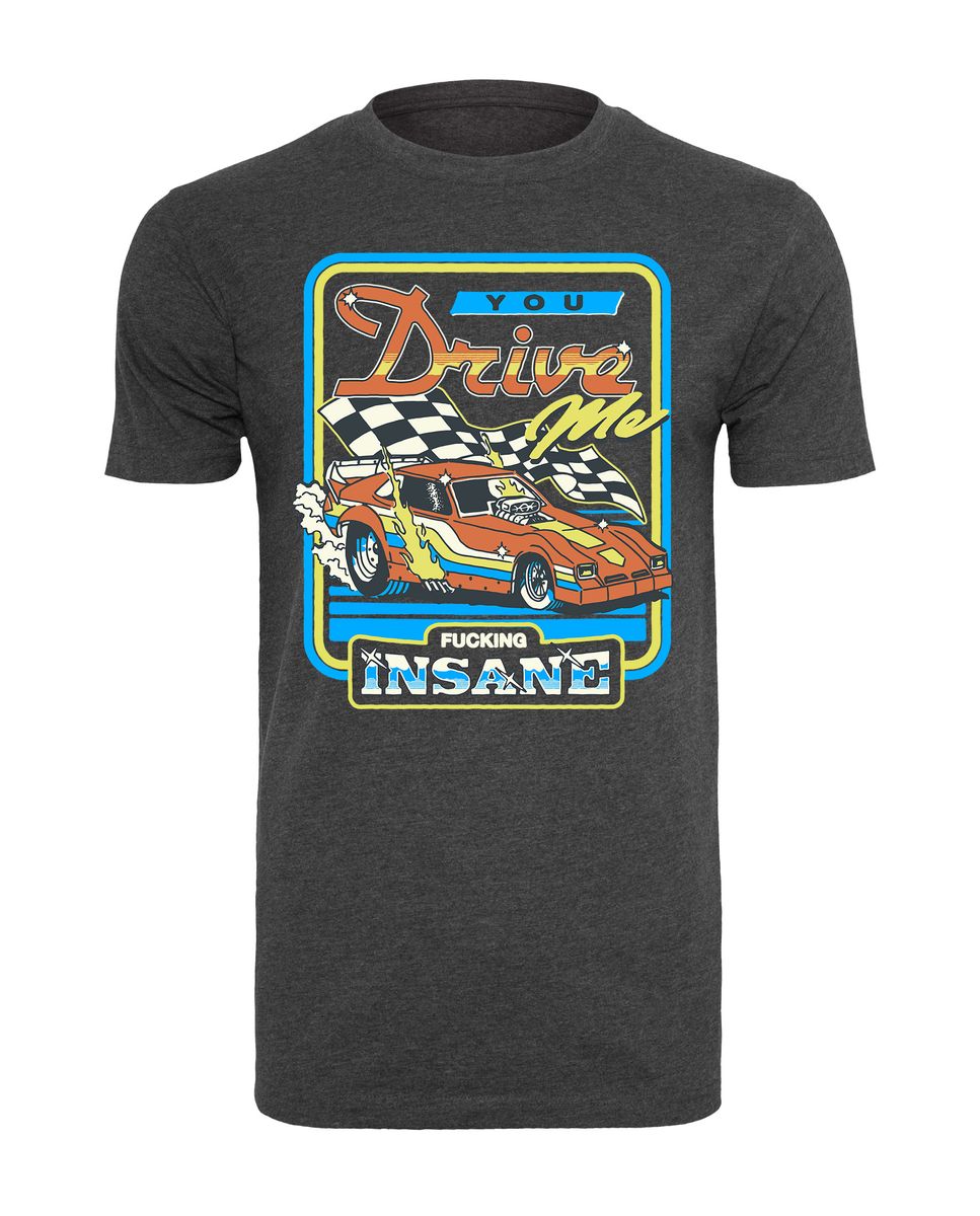 The T-shirt shows a race car with the slogan ‘You Drive Me Insane’.