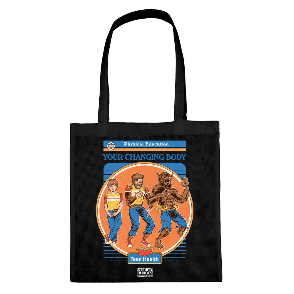 The bag shows a boy turning into a werewolf. You can see the phrase "Your Changing Body" above it.