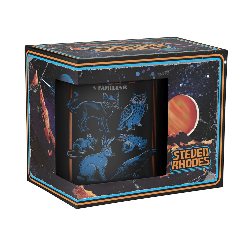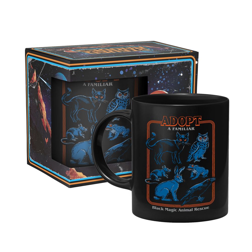 Die Tasse zeigt verschiedene Tiere, die auf Adoption warten. Darunter steht der Spruch "Black Magic Animal Rescue".