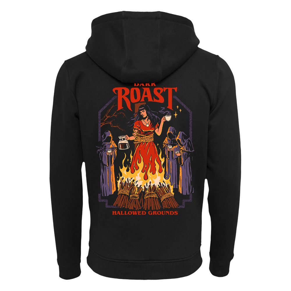 Der Hoodie zeigt eine Frau auf dem Scheiterhaufen, die Kaffee ausschenkt.