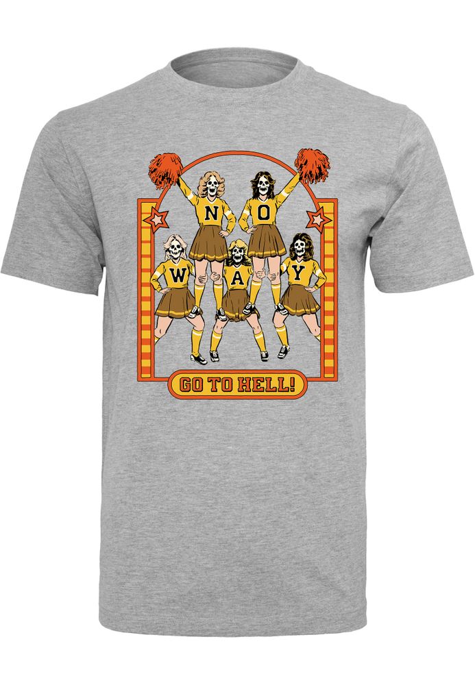 Das T-Shirt zeigt eine Totenkopf-Cheerleadergruppe, die den Spruch "No Way" ergibt.