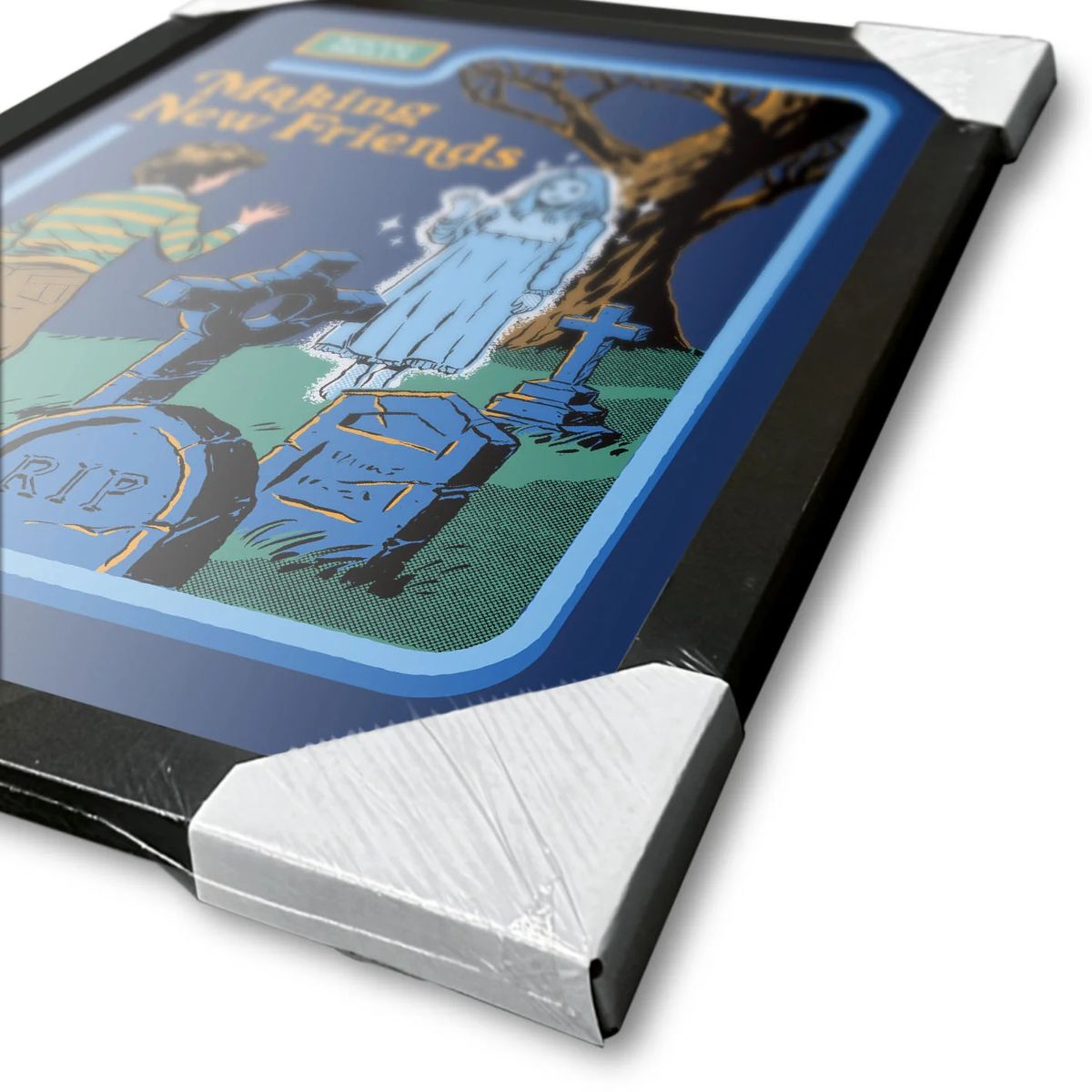 Das hochwertige Bild zeigt einen Jungen, der einem Geistermädchen zuwinkt.