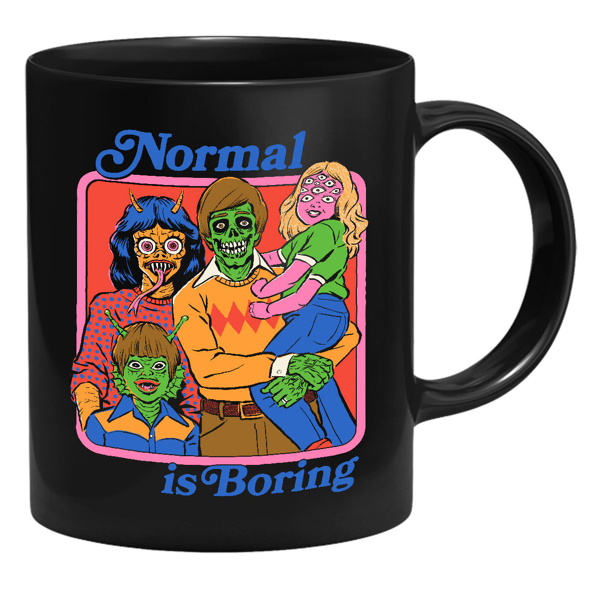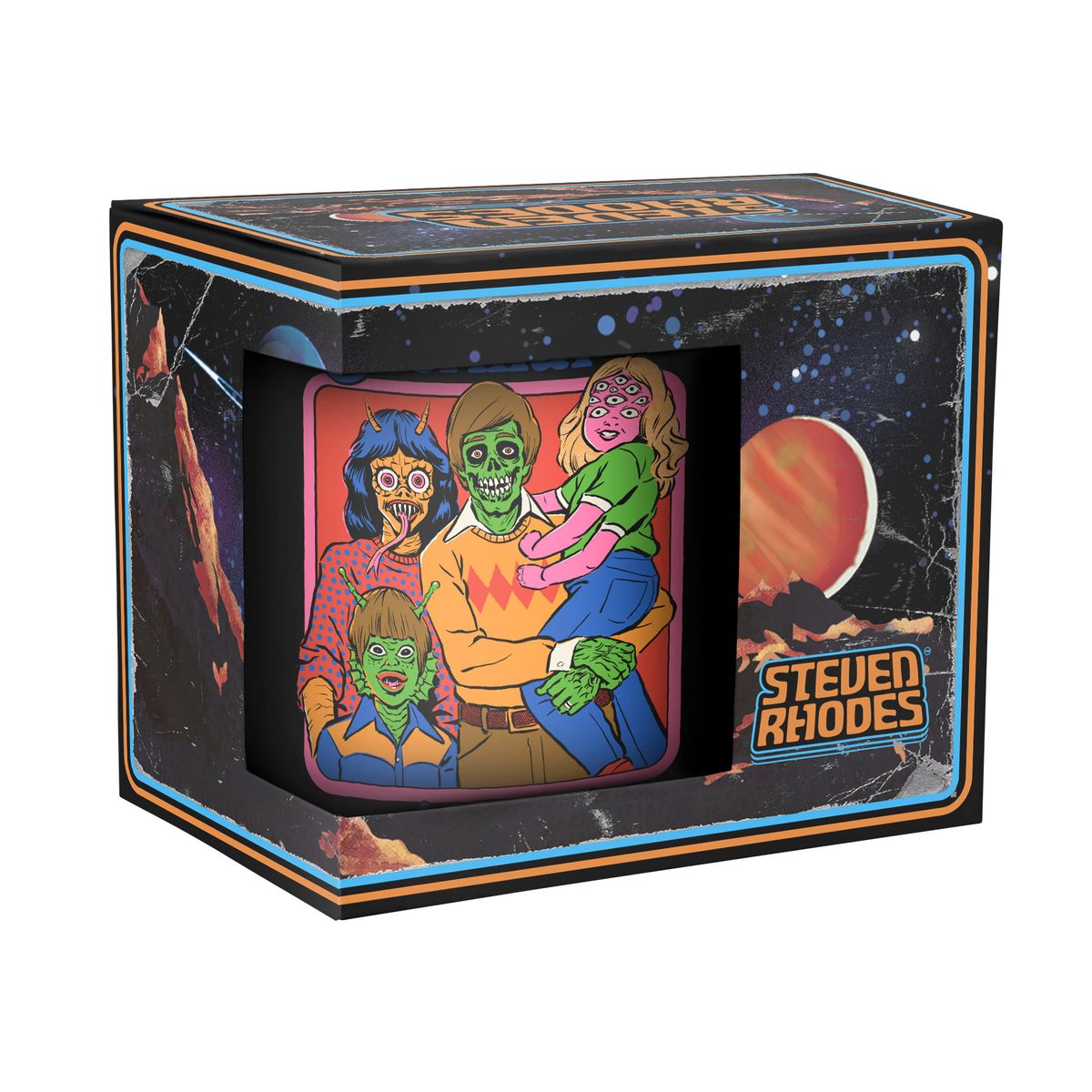Die Tasse zeigt eine aus Monstern bestehende Familie.
