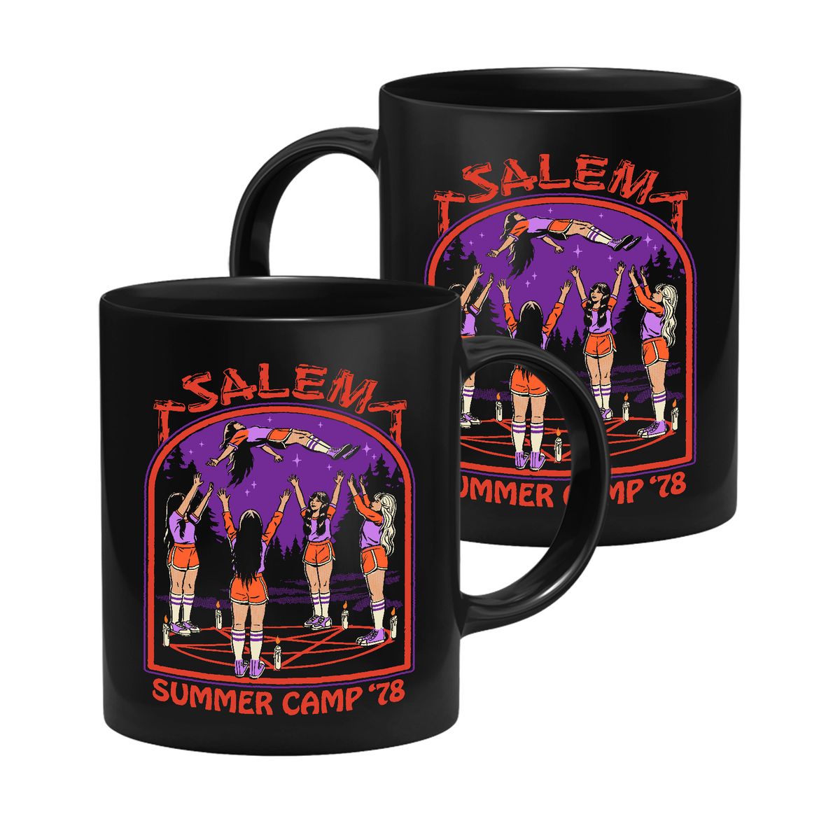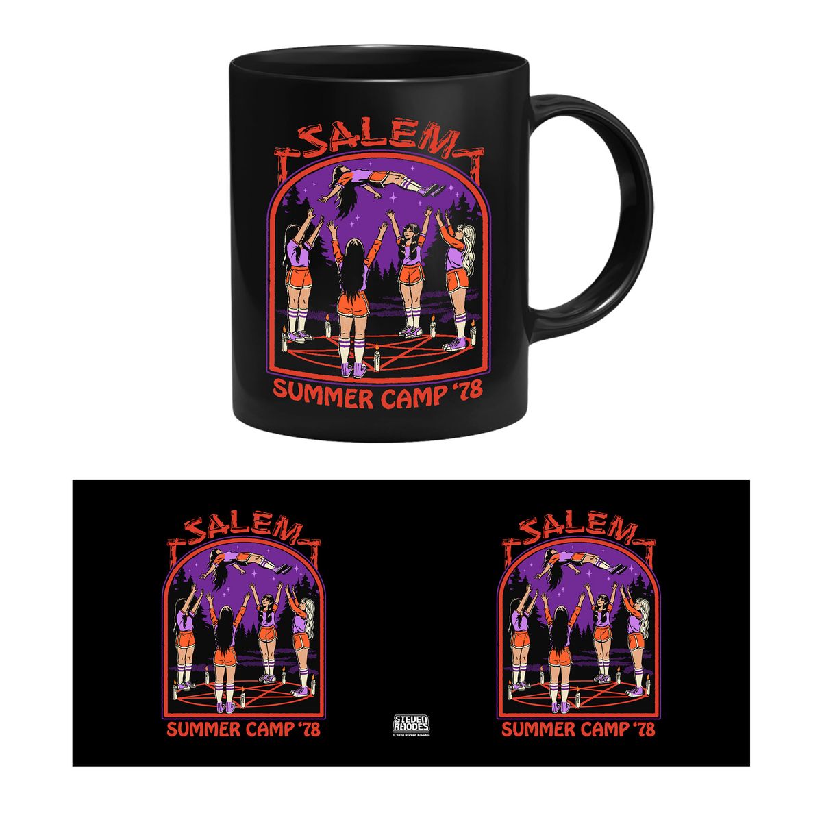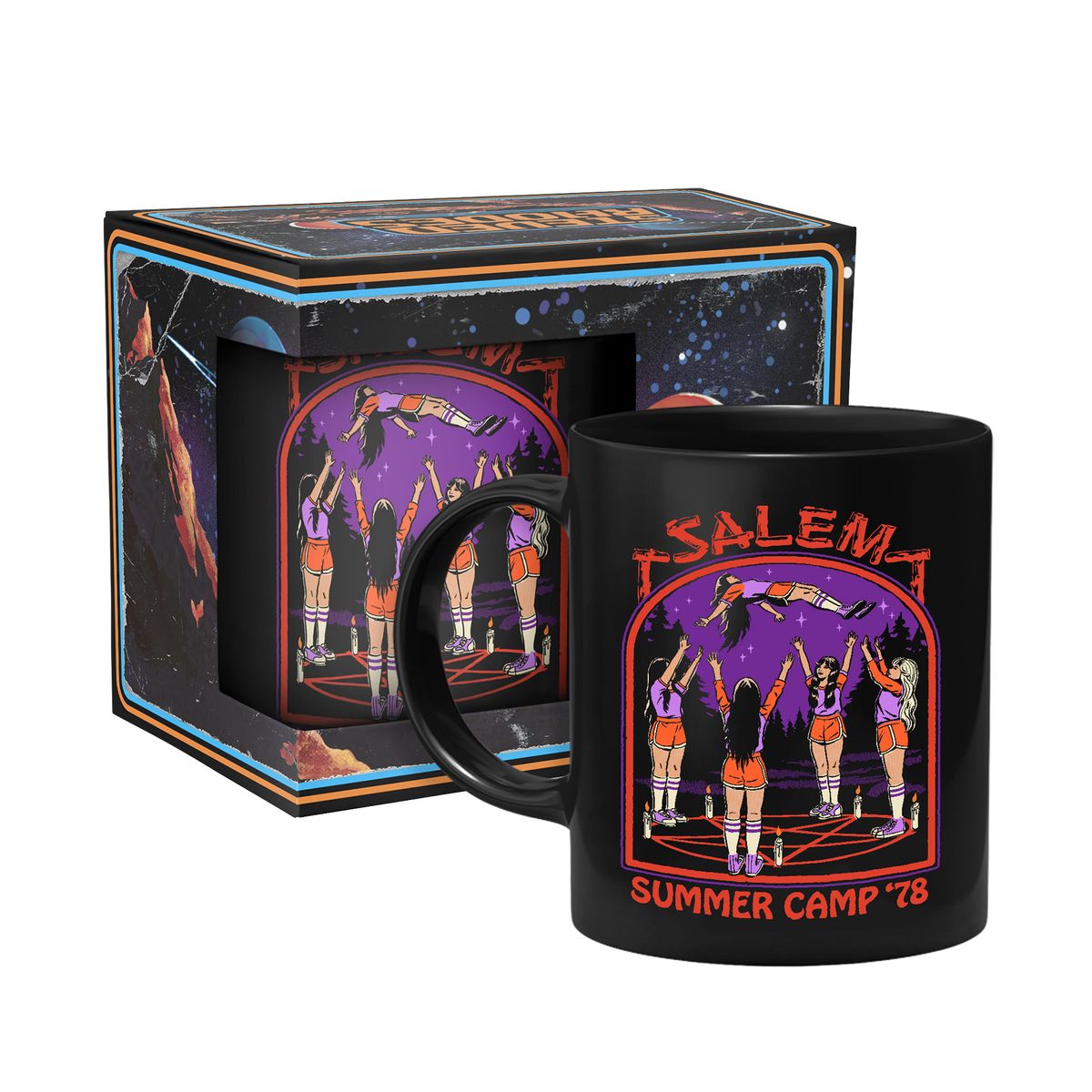 Die Tasse zeigt vier Mädchen in einem Pentagram, die ein fünftes Mädchen schweben lassen.