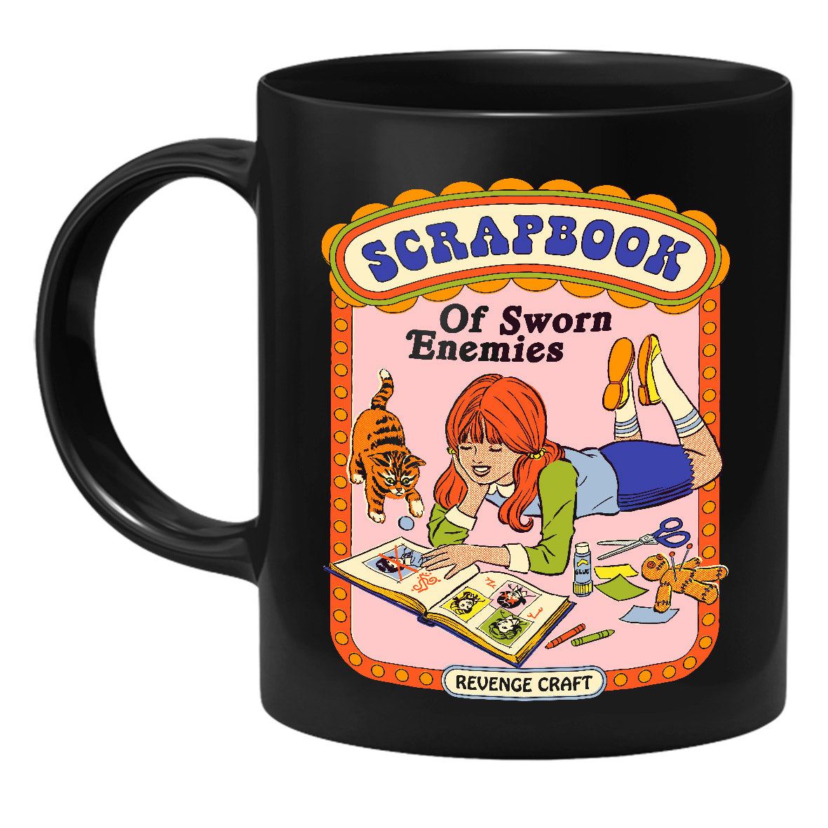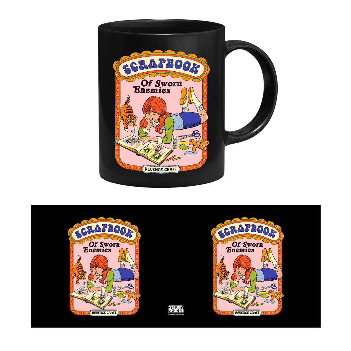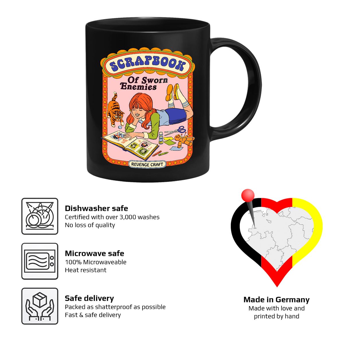Die Tasse zeigt ein Mädchen, das in ihrem Feindebuch blättert.