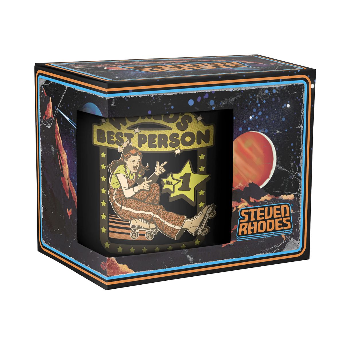 Die Tasse zeigt ein Mädchen auf Rollschuhen mit dem Spruch "World's Best Person".
