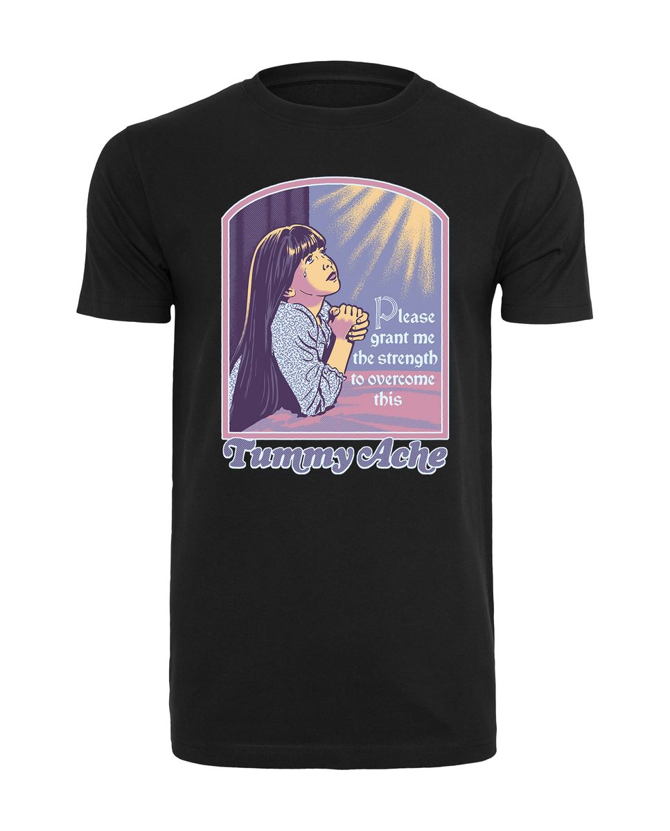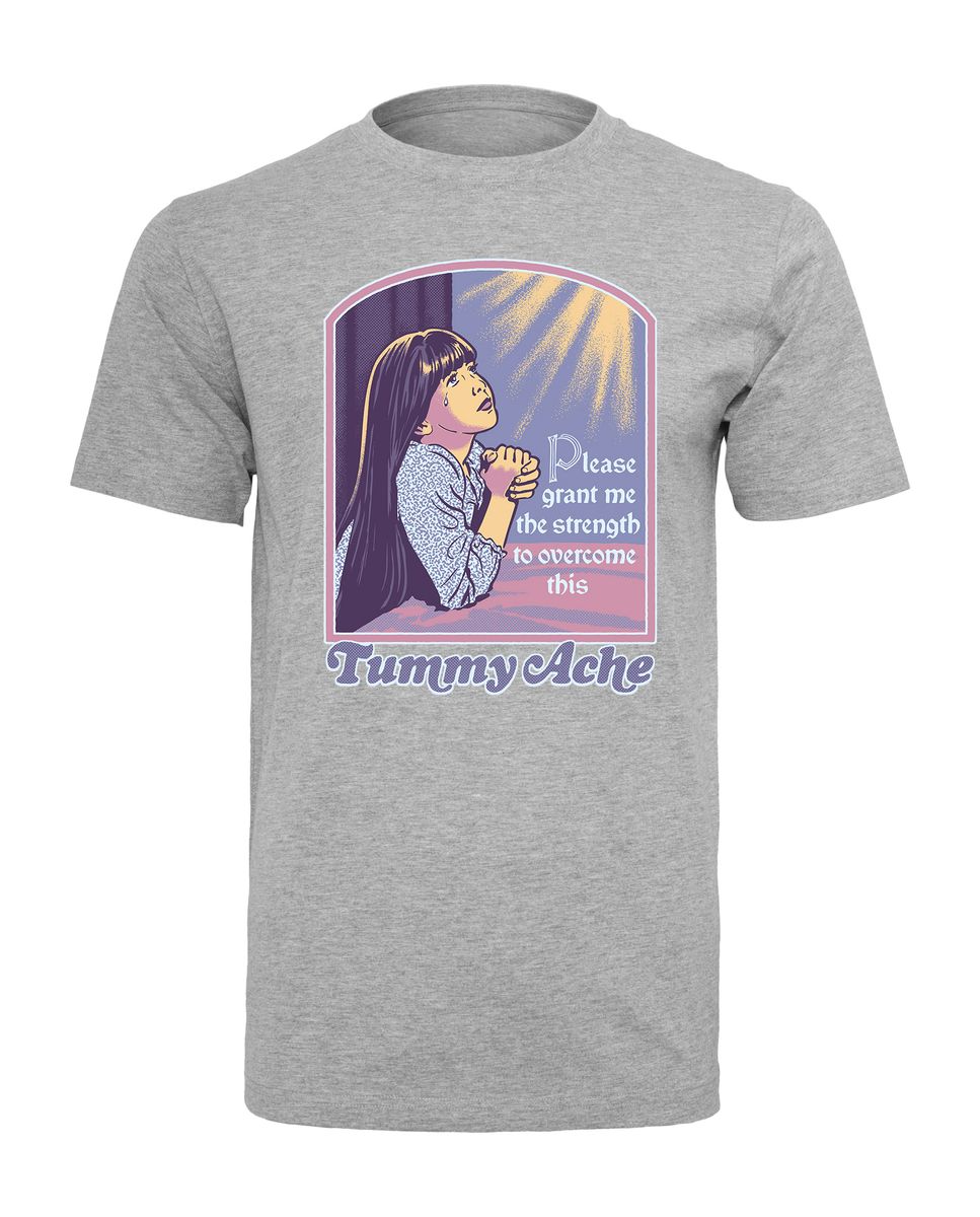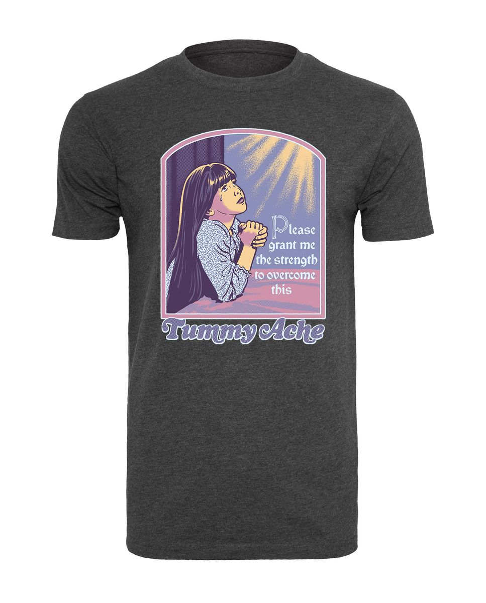 Das T-Shirt zeigt ein Mädchen, das darum bittet ihre Bauchschmerzen ertragen zu können.