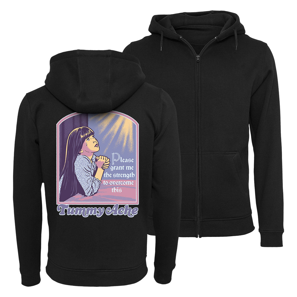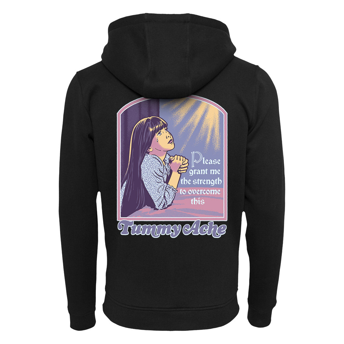 Der Hoodie zeigt ein Mädchen, das darum bittet ihre Bauchschmerzen ertragen zu können.