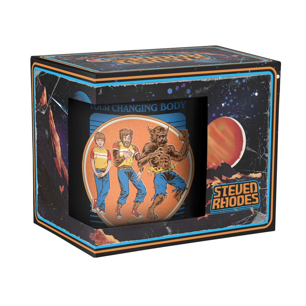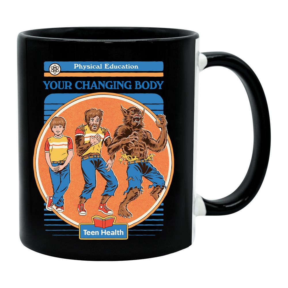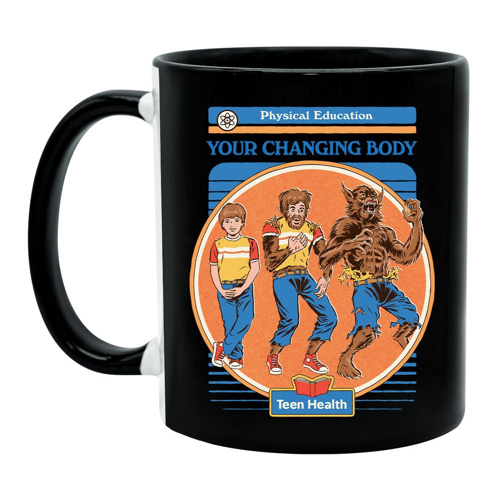 Die Tasse zeigt einen Jungen, der sich in einen Werwolf verwandelt. Darüber steht der Satz "Your Changing Body".